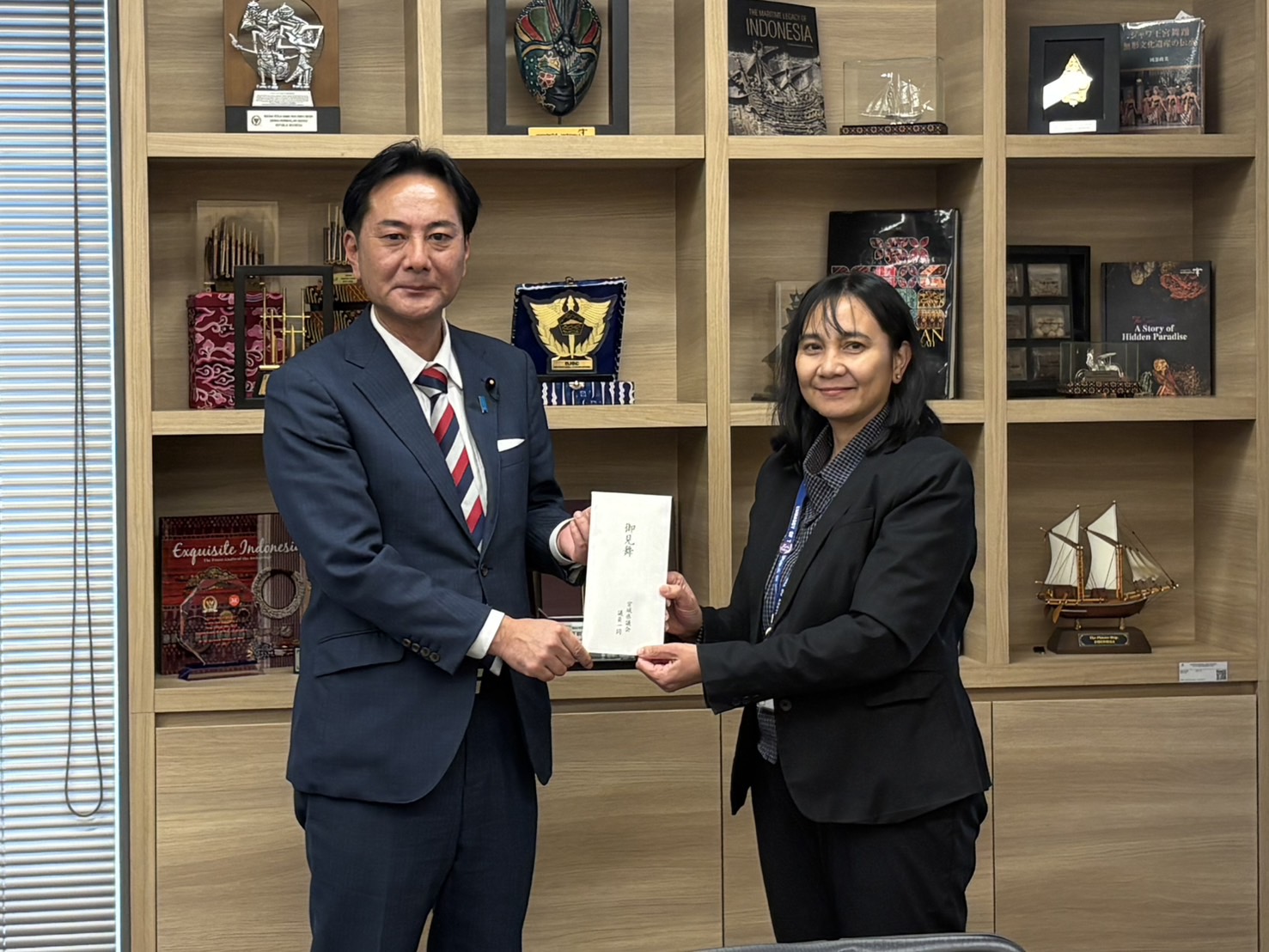 宮城県議会といたしましては、被災地の皆さまに少しでも寄り添うべく、駐日インドネシア大使館のティティク公使をお訪ねし、僅かではありますが見舞金をお届けいたしました。